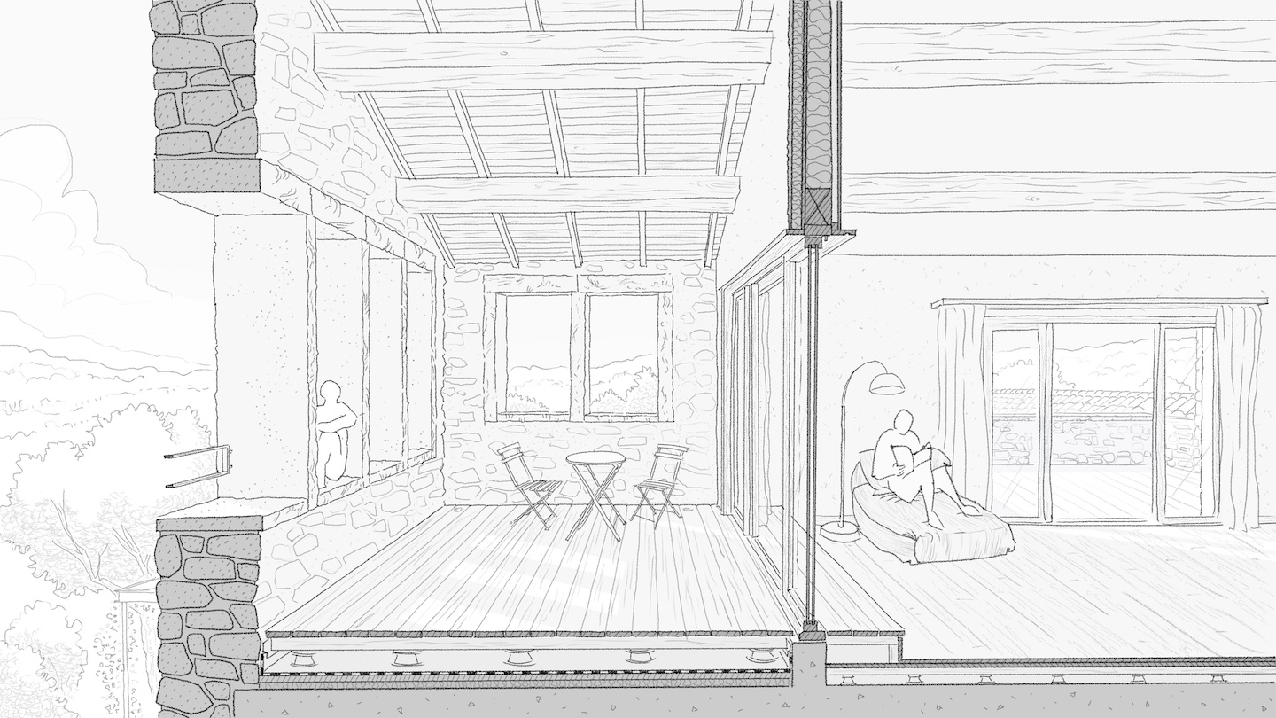 Les précédentes extensions sont ainsi déposées pour réemploi, et divers percements sont créés ou agrandis, offrant autant de relations privilégiées au paysage.